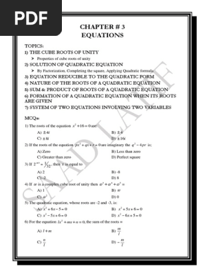 Chapter 3 Equations Pdf Quadratic Equation Factorization